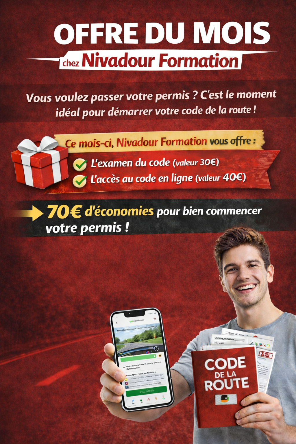 EXAMEN DU CODE OFFERT 30€ + ACCES CODE EN LIGNE 40€